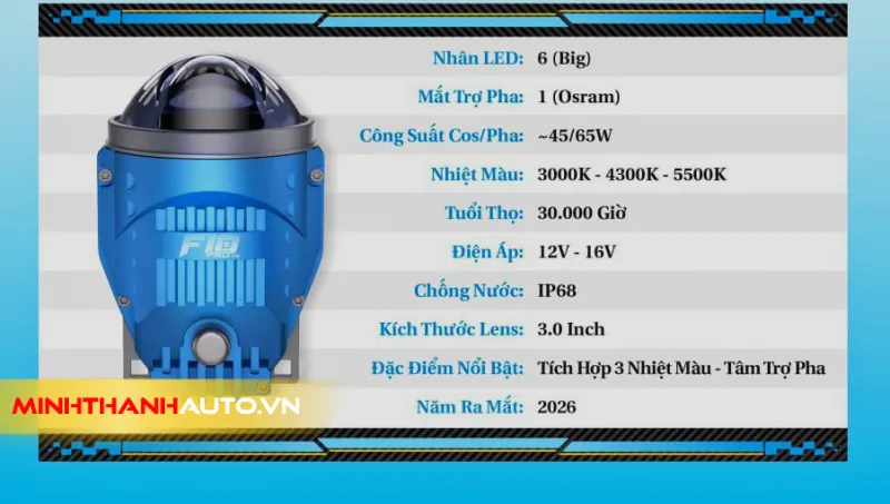 Thiết Kế 3.0 Inch Chuẩn Mực: Với kích thước lens 3.0 inch, sản phẩm dễ dàng lắp đặt vào hốc đèn gầm của hầu hết các dòng xe phổ thông, mang lại vẻ ngoài hầm hố và vừa vặn như zin.