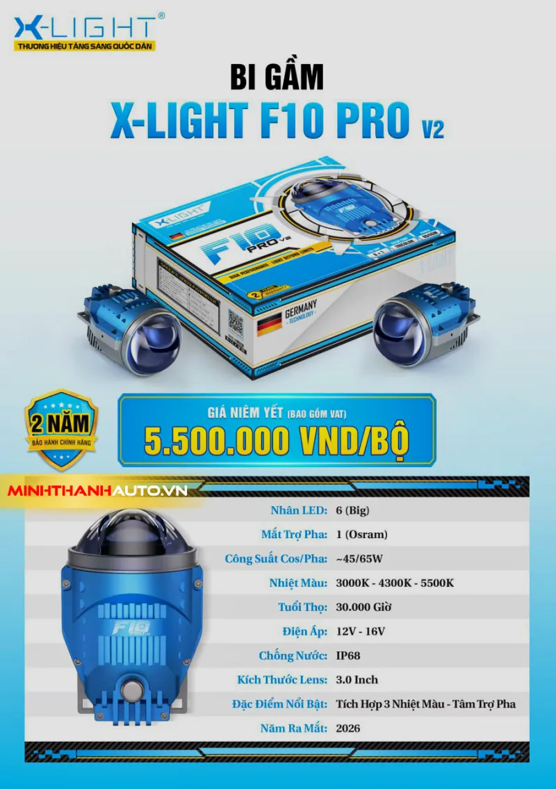 Hãy để màn đêm và thời tiết xấu không còn là trở ngại. Liên hệ ngay với Minh Thành Auto để trang bị Đèn Bi Gầm Xlight F10 Pro V2 và trải nghiệm sự khác biệt về đẳng cấp ánh sáng.