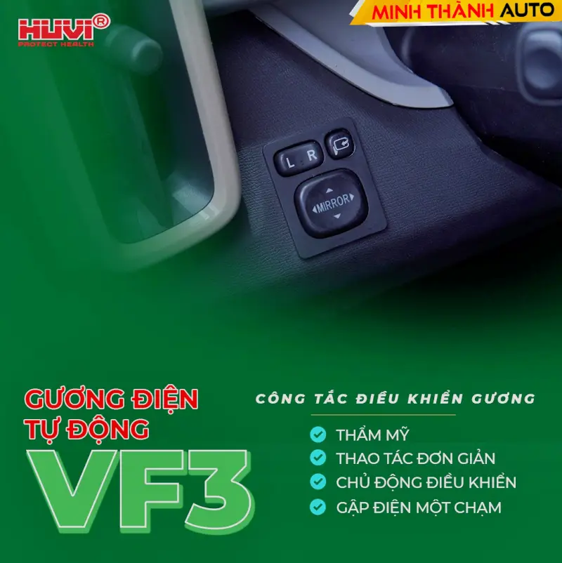 Đừng để sự bất tiện làm giảm trải nghiệm lái xe của bạn. Liên hệ ngay với Minh Thành Auto để nâng cấp Gương điện Vinfast VF3 HUVI và tận hưởng sự an toàn, tiện nghi ngay hôm nay