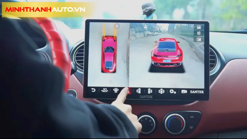 Với phiên bản Santek 2K S600 360, bạn sẽ sở hữu một hệ thống an toàn tối thượng. Bốn mắt camera Sony góc rộng được lắp đặt xung quanh xe, ghép lại thành một hình ảnh 360 độ từ trên xuống, xóa bỏ hoàn toàn điểm mù. Hệ thống hiển thị thông minh theo tín hiệu xi-nhan, số lùi, đồng thời hoạt động như một camera hành trình 4 phía, bảo vệ xe bạn 24/7.