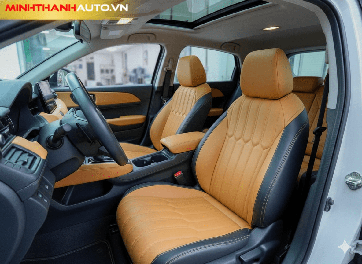 - Về Thẩm Mỹ & Sự Sang Trọng: Gói combo thực sự “lột xác” cho không gian nội thất. Ghế da Simili Nappa mang lại vẻ ngoài cao cấp, sạch sẽ. Thảm KATA và bọc vô lăng tạo nên sự đồng bộ và hoàn thiện.